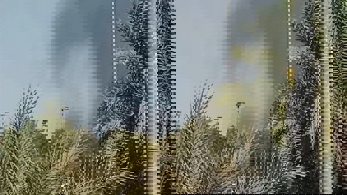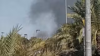 HAWALLI GOVERNORATE, March 2, 2026  -- This screenshot from a video clip taken with a mobile phone shows smoke billowing from an area near the U.S. Embassy in Kuwait's Hawalli Governorate, March 2, 2026.   Smoke was seen billowing from an area near the U.