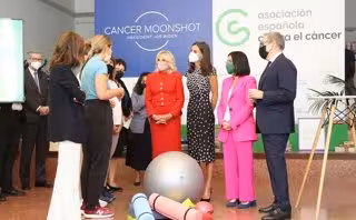 Durante la visita, a la que también ha asistido la ministra de Sanidad, Carolina Darias, la reina, como presidenta de honor con carácter permanente de la AECC y de la Fundación Científica de la Asociación, mostró a la doctora Biden muy implicada en la lucha contra el cáncer mediante la Iniciativa 'Cáncer Moonshot' del presidente Biden, los servicios que ofrece la Asociación para pacientes y familiares.