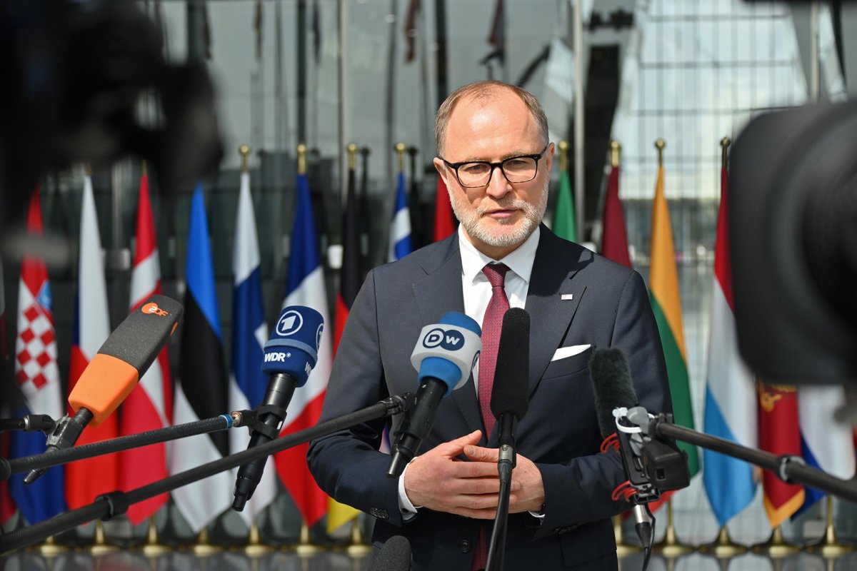 Archivo - 10 April 2025, Belgium, Brüssel: Andris Spruds, Minister of Defense of Latvia, speaks to journalists as Defence ministers from the "coalition of the willing" nations, who are some of Kiev's closest allies, meet at NATO headquarters in Brussels o - Anna Ross/dpa - Archivo