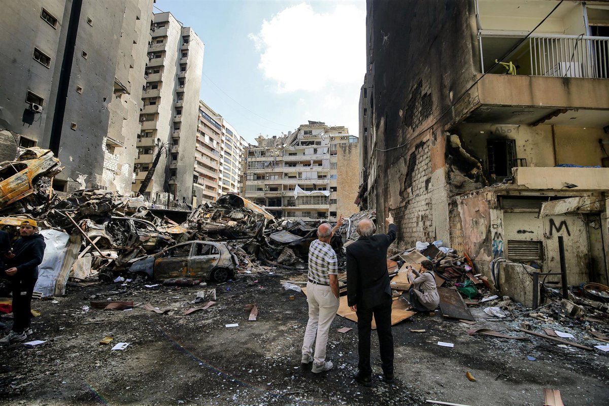April 13, 2026, Beirut, Lebanon: Lebanese civilians gesture as they inspect destruction caused by a massive Israeli air strike in Beirut, 08 April. Lebanon marks the 51st anniversary of the civil war as the country has been dragged back into a state of tu - Europa Press/Contacto/Marwan Naamani