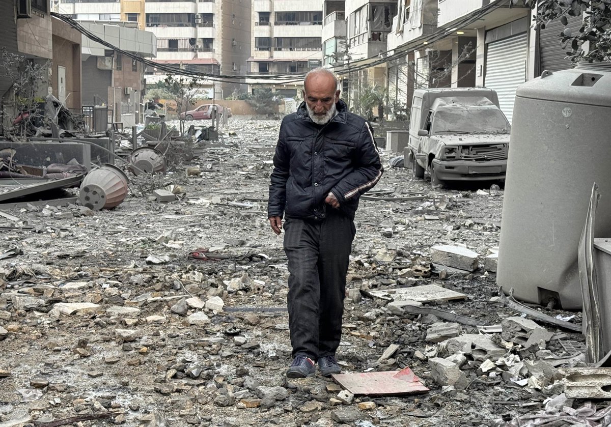 BEIRUT, March 8, 2026 -- A man walks among the rubble after Israeli attacks in the southern suburbs of Beirut, Lebanon, March 7, 2026. The number of displaced people registered through Lebanon's government relief platform has reached about 454,000, Min - Europa Press/Contacto/Bilal Jawich