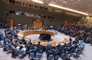 April 7, 2026, New York, New York, United States: Atmosphere during Security Council meeting as members vote on draft resolution on reopening of Strait of Hormuz at UN Headquarters in New York, NY on April 7, 2026. Bahrain is the President of Security Cou - Europa Press/Contacto/Lev Radin