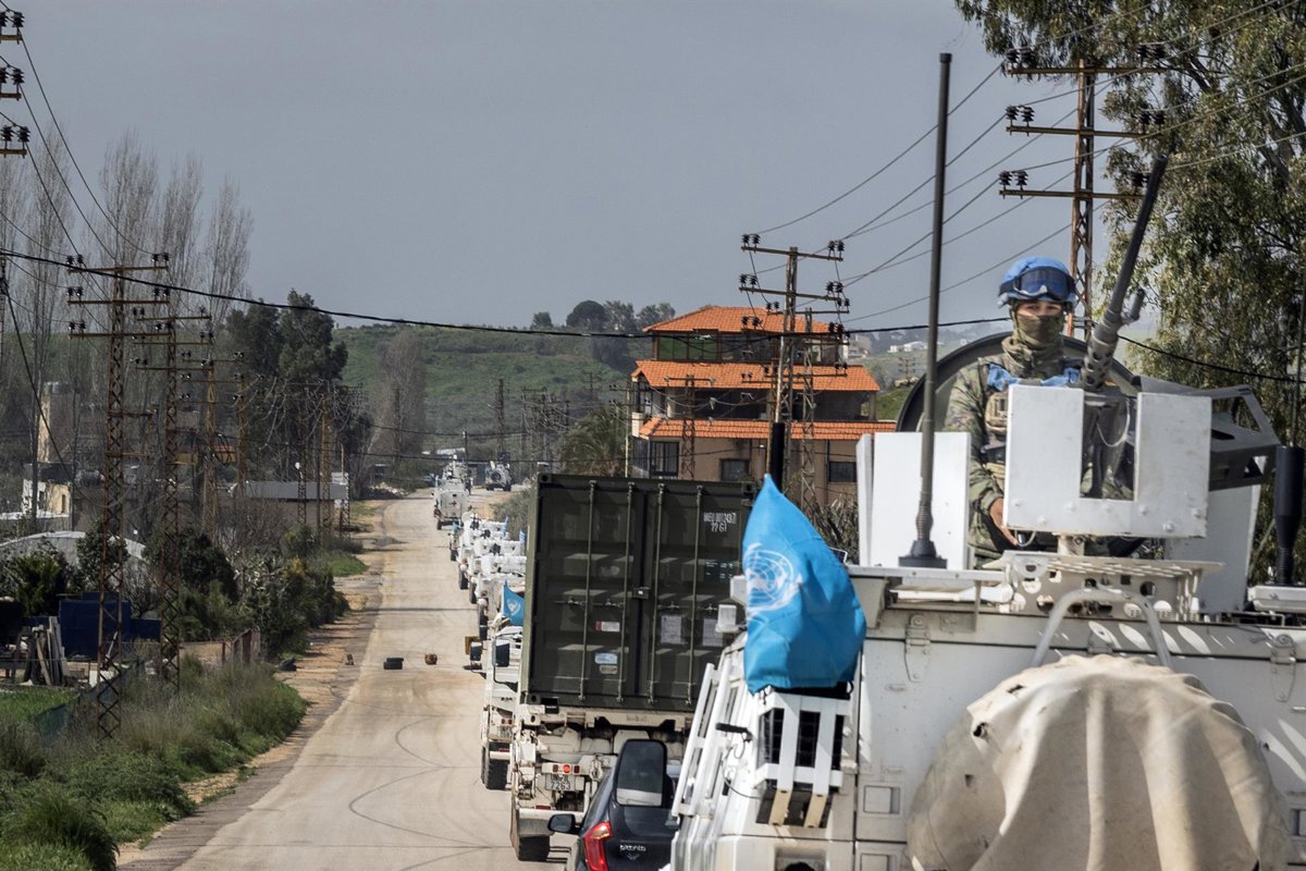 April 5, 2026, Lebanon: UNIFIL soldiers patrol a street outside Marjaayoun, Lebanon on April 5, 2026. At least three UNIFIL soldiers have been killed since the war intensified in early March. - Europa Press/Contacto/Daniel Carde