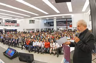 Lula inició el discurso de abertura del congreso "Acción colectiva, democracia, trabajo y transformación social. Los 35 años de las grandes huelgas del ABC --región paulista-- y el futuro de las negociaciones colectivas". La reunión, que comenzó el martes y terminará este miércoles, tuvo lugar en el Sindicato de los Metalúrgicos del ABC paulista en São Bernardo do Campo (Brasil).