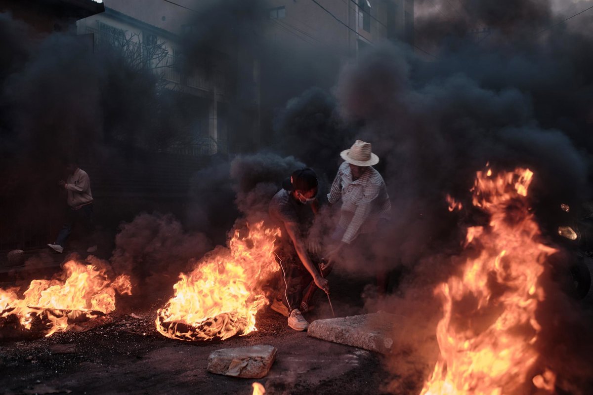 25 September 2025, Madagascar, Antananarivo: Protesters burning tires and placing large concrete blocks in the streets during a protest organized by the Gen Z movement to denounce water and power shortages and government mismanagement. Photo: Iako Randria