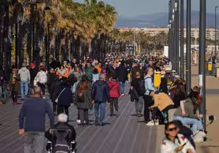 Varias personas pasean por el paseo marítimo, a 25 de diciembre de 2023, en Valencia, Comunidad Valenciana (España). Valencia ha amanecido con cielos despejados y, aunque las temperaturas máximas que se esperan, según la Agencia Estatal de Meteorología - Eduardo Manzana - Europa Press