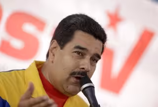 Venezuela's President Nicolas Maduro speaks in a news conference after voting in