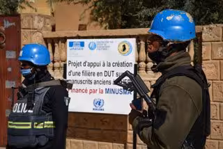 Archivo - February 10, 2022, Tombouctou (Timbuktu, Tombouctou (Timbuktu, Mali: Members of the United Nations Police Force (UNPOL) in Mali operating within MINUSMA secure a delegation during a working mission in downtown Timbuktu, February 8, 2022. - Europa Press/Contacto/Nicolas Remene - Archivo