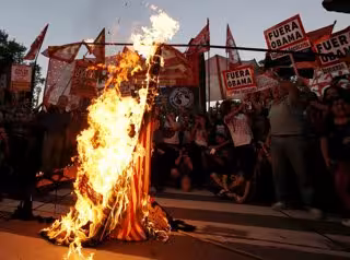 Queman bandera de EEUU en una manifestación en Argentina contra la visita Obama