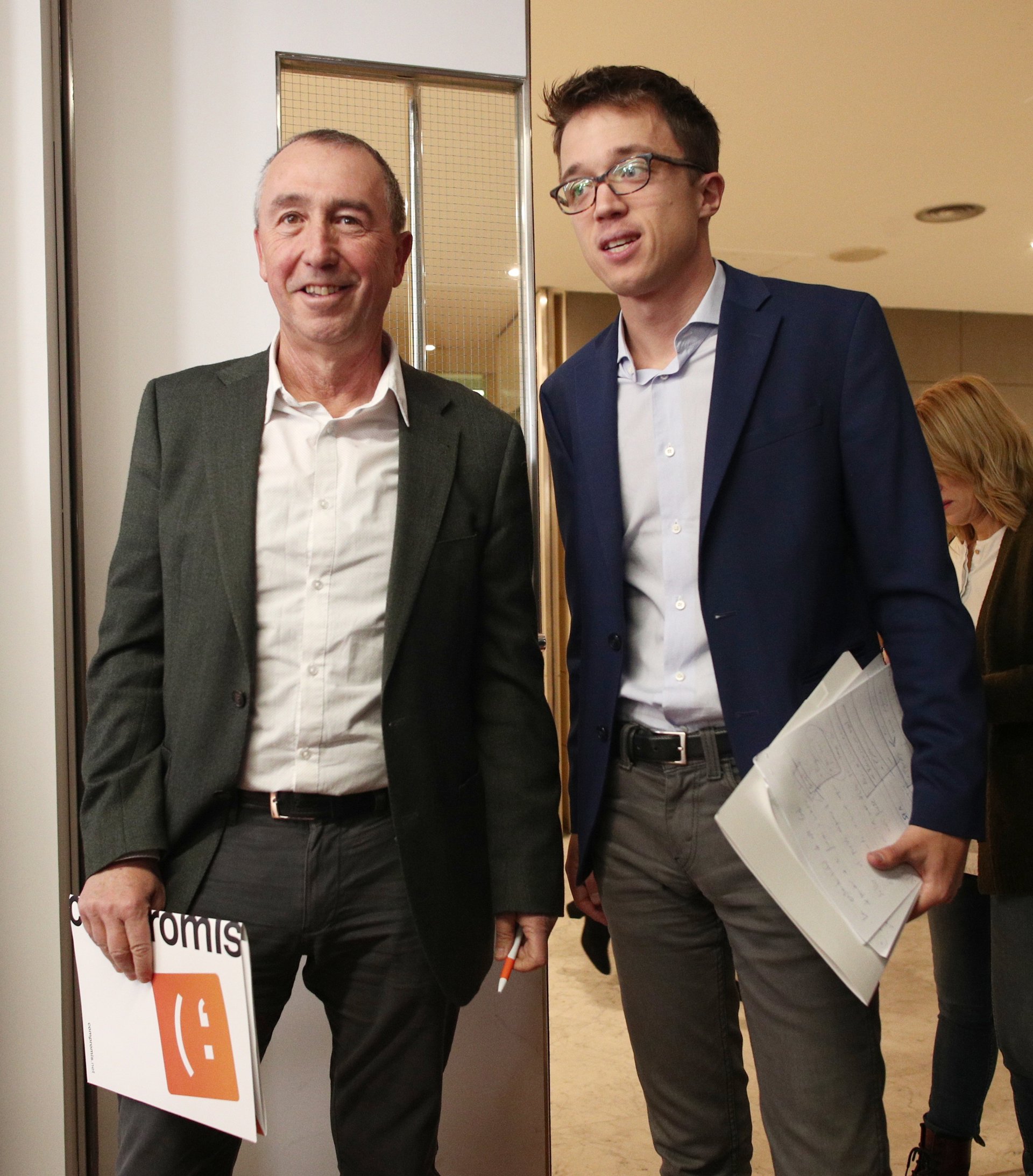 El diputado de Compromís, Joan Baldoví (i) y el líder de Más País, Íñigo Errejón, se dirigen a ofrecer una rueda de prensa tras su reunión con el PSOE para la investidura de Pedro Sánchez, en el Congreso de los Diputados, Madrid (España), a 17 de diciem - Eduardo Parra - Europa Press - Archivo