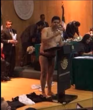 "¡De esto no me van a poder despojar!, ¡Solamente me queda esto!", ha exclamado mientras se quitaba el traje y los zapatos. "¡Ustedes también tienen cuerpo!", ha respondido a los comentarios socarrones que procedían de las bancadas rivales, tal y como ha informado el diario mexicano 'La Jornada'.