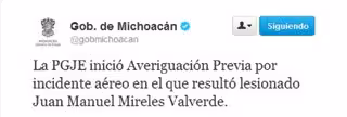 La Procuraduría General de la Repúbliva (PGJE) ya ha iniciado la averiguación previa por el incidente aéreo en el que resultó lesionado Juan Manuel Mireles Valverde.