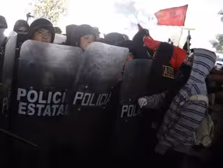 Ante la imposibilidad de poder acceder al centro de la ciudad debido al férreo control de seguridad desplegado por la Policía estatal y federal, se han producido los primeros enfrentamientos entre las fuerzas del orden y unos cuarenta manifestantes, según ha informado el diario mexicano 'La Jornada'.