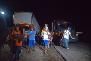 Caravana de migrantes intenta cruzar México de camino a Estados Unidos.