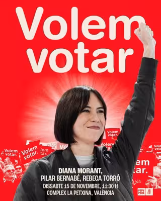 La secretaria general del PSOE de Valencia (PSPV) publicó un cartel en el que aparece ella en primer plano con un haz de luz detrás de su cabeza, sobre un fondo rojo en el que también se ven manifestantes, y con el lema "Volem votar" (Queremos votar) en la mitad superior del anuncio. Así, como uno de los carteles que publicó Mamdani, aunque este lo hizo con el lema "Socialism wins" (El socialismo gana).
