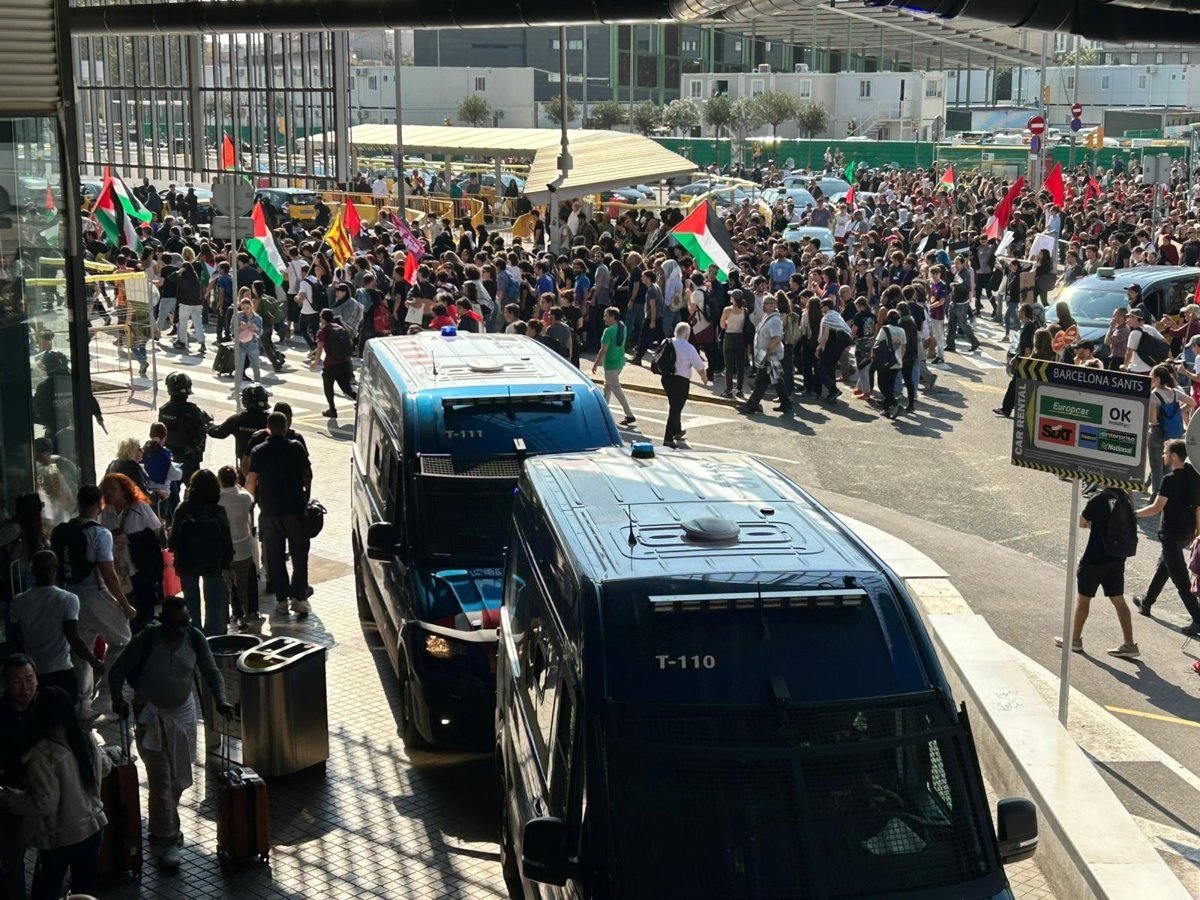 Los Mossos dispersan a manifestantes pro Palestina que querían acceder a la estación de Sants
