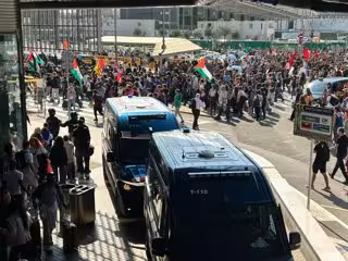 Los Mossos dispersan a manifestantes pro Palestina que querían acceder a la estación de Sants de Barcelona.