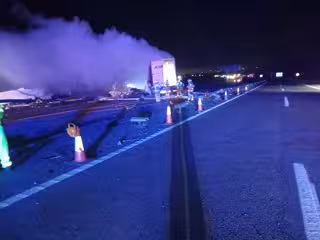 En el accidente se han visto implicados 3 camiones, 2 de los cuales han ardido y, después de que los bomberos los hayan sofocado sobre las 8.35 horas, ha entrado la maquinaria pesada a limpiar la calzada, ya que la mediana está dañada y hay mucha chatarra en el asfalto.