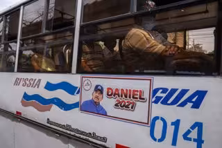 Archivo - Cartel con la imagen de Daniel Ortega en un autobús - -/dpa - Archivo