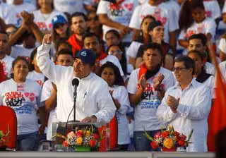 El ambiente era festivo en la zona desde mediodía. Los vendedores ambulantes vendían pañoletas rojinegras, los colores del oficialista Frente Sandinista de Liberación Nacional, y camisetas con la imagen del 'Ché Guevara', mientras se escuchaba canción revolucionaria y se repetía una consigna: "Se queda, se queda, se queda Daniel se queda".