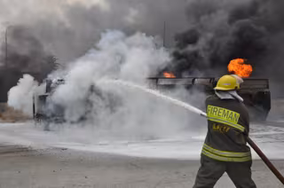Archivo - (210107) -- LAGOS, Jan. 7, 2021 (Xinhua) -- A firefighter works at the scene of an oil tanker explosion on the Oshodi-Apapa expressway in Lagos, Nigeria, Jan. 7, 2021. A tanker conveying petroleum product on Thursday morning rolled over and burs - Europa Press/Contacto/Emma Niel - Archivo