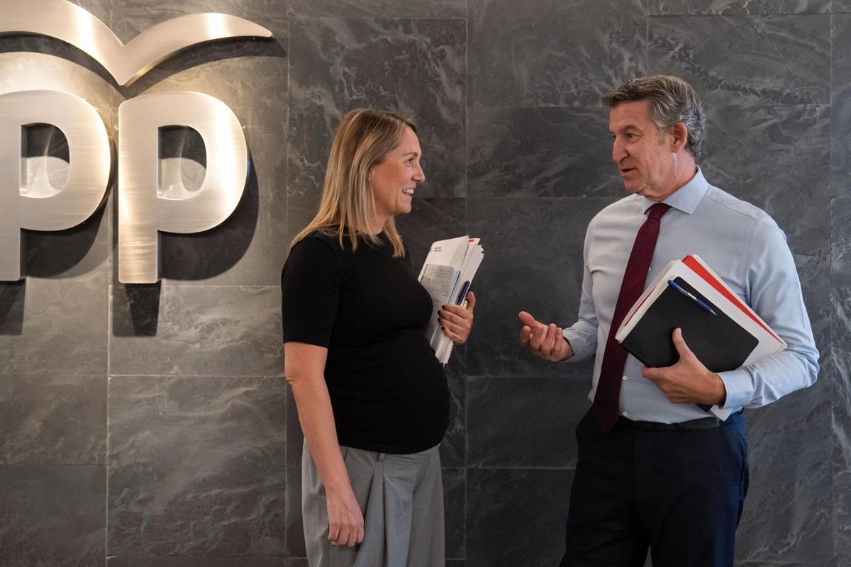 El líder del PP, Alberto Núñez Feijóo, junto a la vicesecretaria de Coordinación Sectorial del PP, Alma Ezcurra.