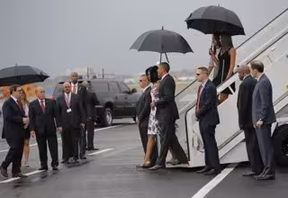 La llegada del avión presidencial Air Force One en la tarde de este domingo en el Aeropuerto Internacional José Martí de La Habana, supone el inicio de la histórica visita oficial de Obama a la isla. La lluvia ha marcado todo el ceremonial de recepción.