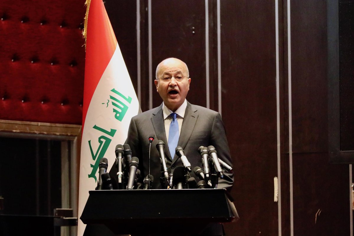 Archivo - BAGHDAD, Feb. 7, 2019 Iraqi President Barham Salih speaks at the opening ceremony of the Baghdad International Book Fair 2019, in Baghdad, Iraq, Feb. 7, 2019. The fair kicked off Thursday with the participation of hundreds of publishers and hig - Europa Press/Contacto/Khalil Dawood - Archivo