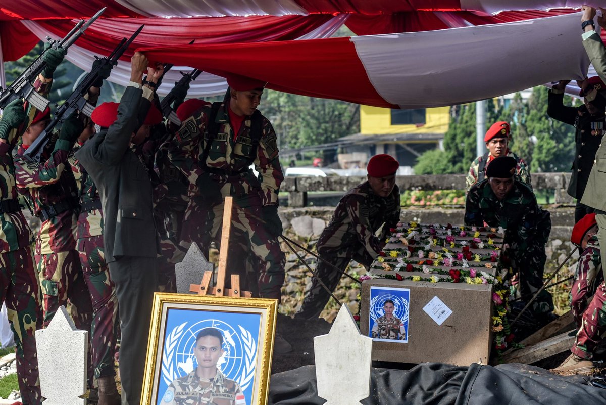 April 5, 2026, Bandung, West Java, Indonesia: Indonesian soldiers carry the coffin of a United Nations Interim Force in Lebanon (UNIFIL) peacekeeper killed in Lebanon, Zulmi Aditya Iskandar, during funeral of fallen at the Cikutra Heroes Cemetery in Bandu - Europa Press/Contacto/Dimas Rachmatsyah