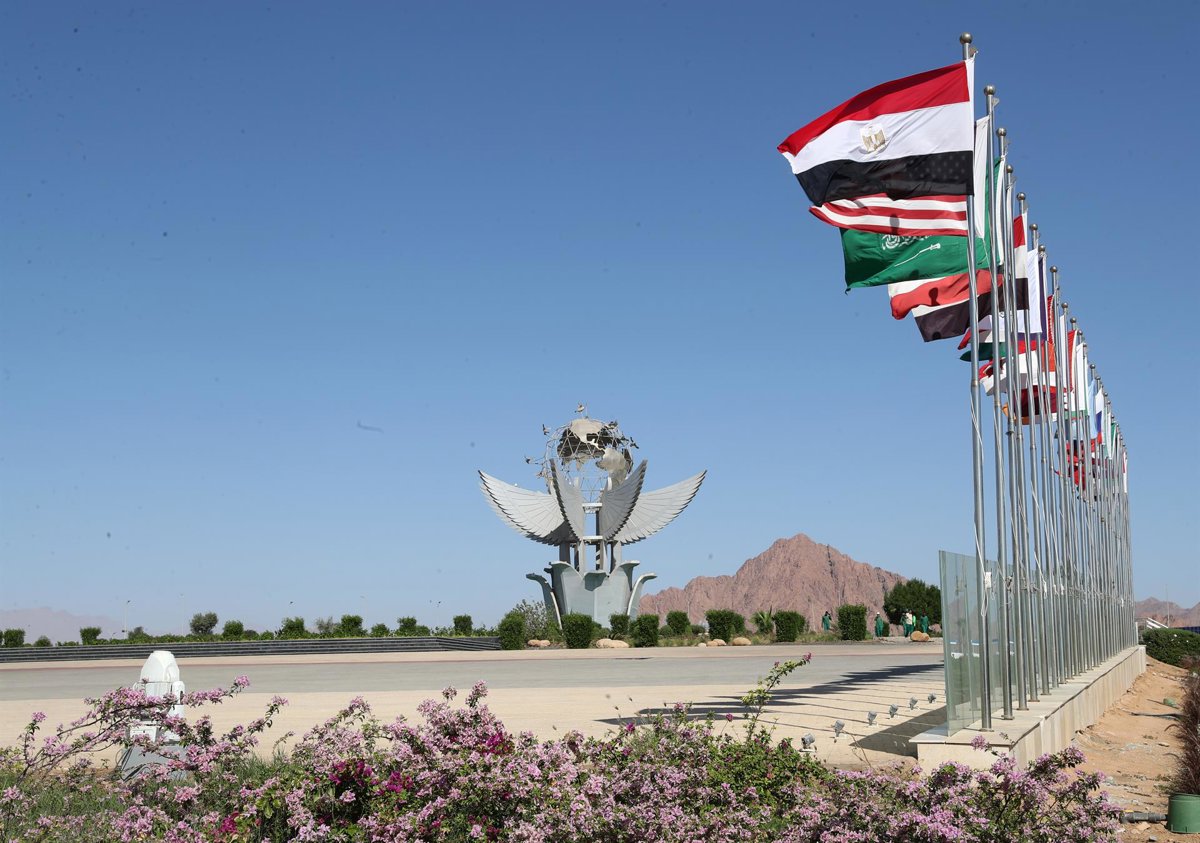 SHARM EL-SHEIKH, Oct. 12, 2025 -- This photo taken on Oct. 12, 2025 shows the Peace Square in the Red Sea resort city of Sharm el-Sheikh, Egypt. Sharm el-Sheikh is scheduled to host a summit to end the war in Gaza, co-chaired by Egyptian President Abdel - Europa Press/Contacto/Sui Xiankai
