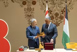 Al acto también han asistido la quinta teniente de alcaldía de Barcelona, Raquel Gil, y el concejal de Belén Qasim Kanaan, y Collboni ha obsequiado a su homólogo con la 'B' de Barcelona y una figura de Paloma de la Paz, mientras que Canawati le ha dado una maqueta limitada especial de la Iglesia de la Natividad que incluye madera de la antigua Iglesia antes de que fuera reformada.