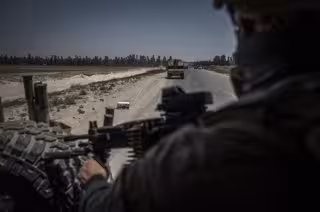 Archivo - 08 June 2025, Palestinian Territories, Khan Yunis: Israeli military vehicles drive along the Morag Corridor in the southern Gaza Strip. Photo: Ilia Yefimovich/dpa