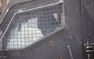 May 20, 2025, Nablus, West Bank, Palestine: An Israeli soldier seen inside an Israeli army armored vehicle during a raid on neighborhoods in the Askar refugee camp east of Nablus in the West Bank. Israeli soldiers raided neighborhoods and homes in search
