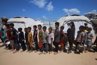 Niños palestinos hacen cola para coger comida. - Omar Ashtawy/APA Images via ZUMA / DPA