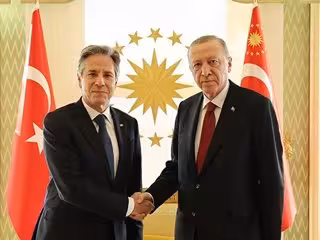 "El presidente, Recep Tayyip Erdogan, ha recibido al secretario de Estado estadounidense, Antony Blinken, en la Mansión Vahdettin de Estambul", ha dicho la Presidencia turca en un breve mensaje en su cuenta en la red social X, junto a una fotografía de ambos saludándose durante su reunión.