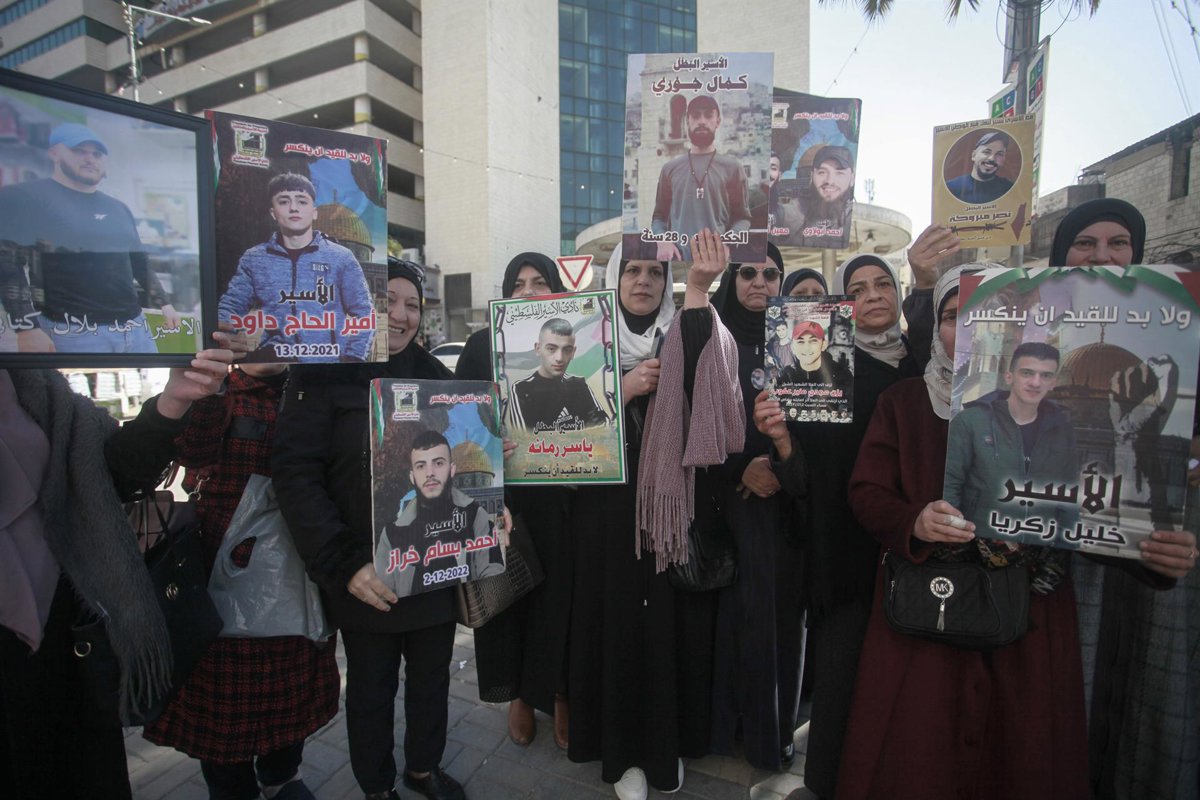 Archivo - February 18, 2025, Nablus, West Bank, Palestine: Mothers of Palestinian prisoners chant slogans and hold pictures of their imprisoned sons, demanding a prisoner exchange deal between Hamas and Israel in the second deal of talks between Israel an - Europa Press/Contacto/Nasser Ishtayeh - Archivo