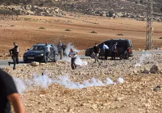 November 3, 2025, Hebron, West Bank, Palestinian Territory: The Israeli army intervenes with tear gas and sound bombs against Palestinian farmers trying to access their own land in the al-Jalatiya area of Idhna, west of Hebron in the West Bank on November - Europa Press/Contacto/Mamoun Wazwaz