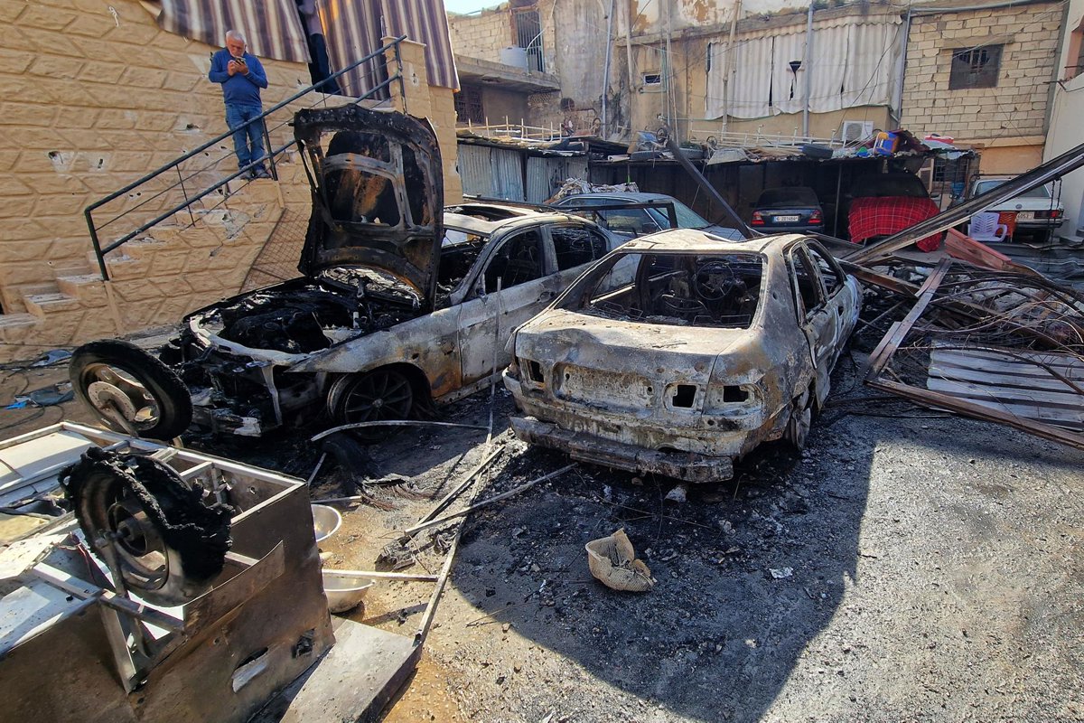 November 19, 2025, Ain Al-Hilweh, Ain Al-Hilweh, Lebanon: Destroyed cars are seen at the site where an Israeli air raid hit in the Palestinian refugee camp of Ain al-Hilweh in the southern Lebanese. Thirteen people were killed and several others were woun - Europa Press/Contacto/Marwan Naamani