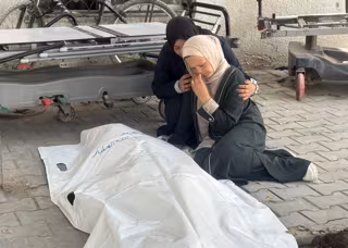 April 16, 2026, Gaza City, Gaza Strip, Palestinian Territory: Mourners grieve over the bodies of two members of the al-Attar family, killed in an Israeli army strike in the al-Atatra area, north of the Gaza Strip, at al-Shifa Hospital in Gaza City, on Apr - Europa Press/Contacto/Mekael Bhar