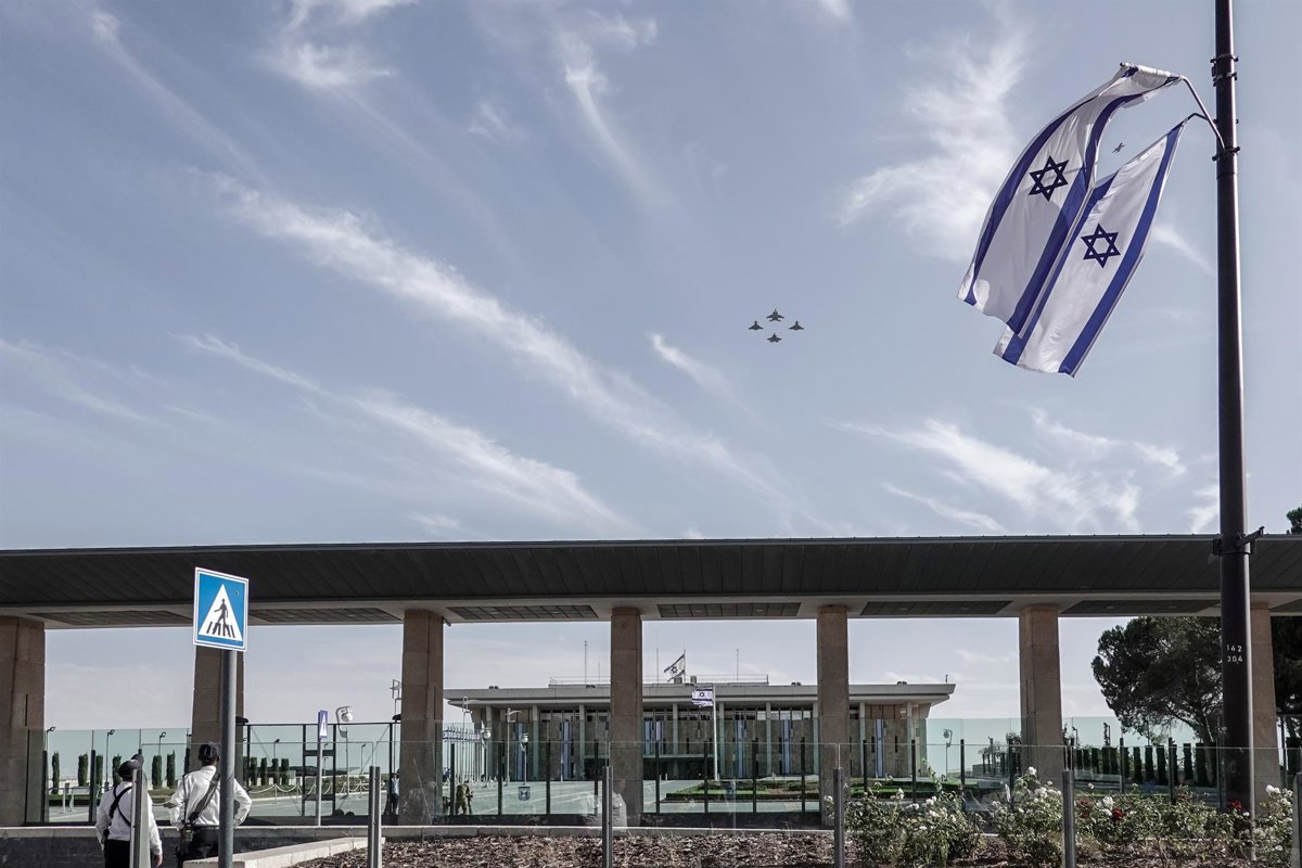 Archivo - 17 October 2021, Israel, Jerusalem: Two Eurofighter Typhoon jets, an F-35 and an F-15 perform a flyby over the Knesset building ahead of the international Blue Flag 2021 exercise, considered the largest and most advanced aerial exercise in Israe - Nir Alon/ZUMA Press Wire/dpa - Archivo