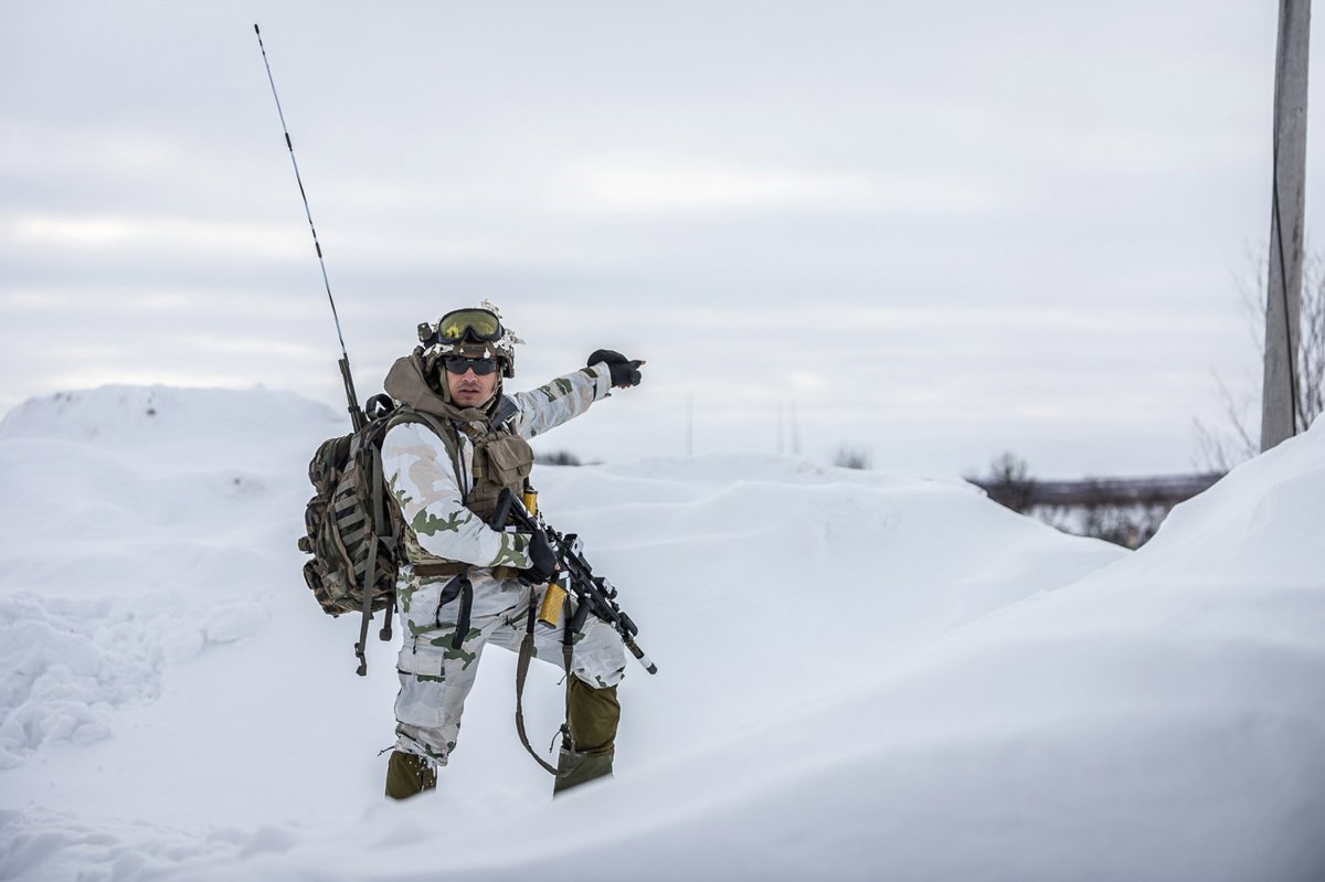 Soldado del Grupo de Batalla 'Estrella Nórdica' cerca de Masi, Noruega. 8 de marzo de 2024.
