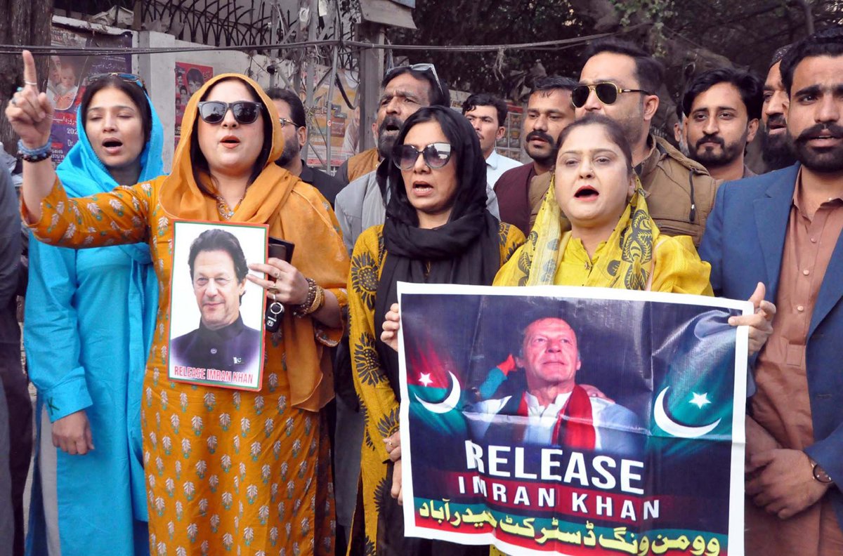 November 28, 2025, Pakistan: HYDERABAD, PAKISTAN, NOV 28: Activists of Tehreek-e-Insaf (PTI) are holding protest .demonstration for release of PTI Founder, Imran Khan at Hyderabad press club on Friday, .November 28, 2025.