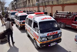 QUETTA (PAKISTAN), March 13, 2025  -- Ambulances carrying victims of a train attack arrive for a funeral in Quetta, Balochistan province, Pakistan, on March 13, 2025. Twenty-one passengers, four soldiers and 33 terrorists were killed after heavily armed t