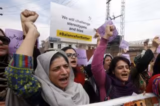 Mujeres durante una protesta en Peshawar (Pakistán) por el Día Internacional de la Mujer