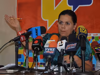 La directora de Comunicación y Propaganda del PSUV, Blanca Eekhout, en una rueda