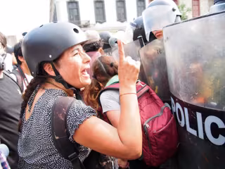 Manifestantes y antidisturbios durante las protestas en Lima, Perú