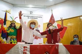 El candidato presidencial de Perú Libre, Pedro Castillo, ha firmado este miércoles un acuerdo político con la excandidata de la coalición Nuevo Perú-Juntos por el Perú, Verónika Mendoza, para "cerrarle el paso a las fuerzas autoritarias y corruptas", en referencia a Keiko Fujimori y su formación Fuerza Popular, en la segunda vuelta de las elecciones.