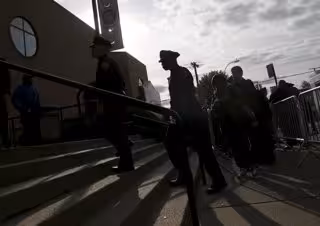 Police officers walk into the Greater Allen A.M.E. Cathedral of New York during