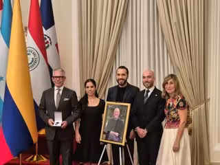 Un momento especialmente emotivo fue cuando se rindió homenaje a Piero Coen Montealegre, empresario centroamericano y socio de CEAPI, recientemente fallecido, perteneciente a una generación de emprendedores hechos a sí mismos, y cuya trayectoria es un ejemplo para todos. El presidente Bukele hizo entrega de la medalla de Honor de CEAPI a título póstumo a su hijo y su nieto con los que compartía nombre, Piero Coen.