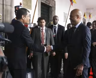 El mandatario de Haití, que llegó a Ecuador acompañado del canciller de Ecuador Ricardo Patiño, fue recibido con los honores de rigor, para después aparecer en el balcón del palacio de gobierno junto al presidente ecuatoriano.